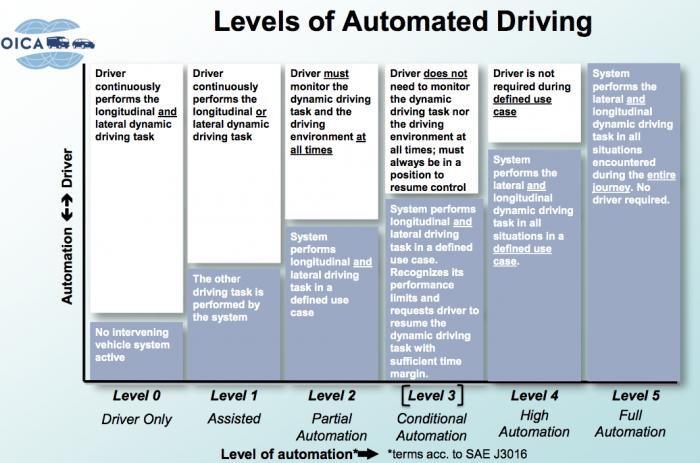 Les 5 niveaux de classification du vĂ©hicule autonome. Le niveau 3 commence Ă  ĂȘtre commercialisĂ©, mais la route est encore longue avant d’atteindre le niveau 5 « Full Automation ». Dans cette optique, l’apport du Deep Learning est une brique technologique vĂ©ritablement « game changing » : auto-apprentissage et partage d'expĂ©riences entre vĂ©hicules. https://lnkd.in/dYcuHX9